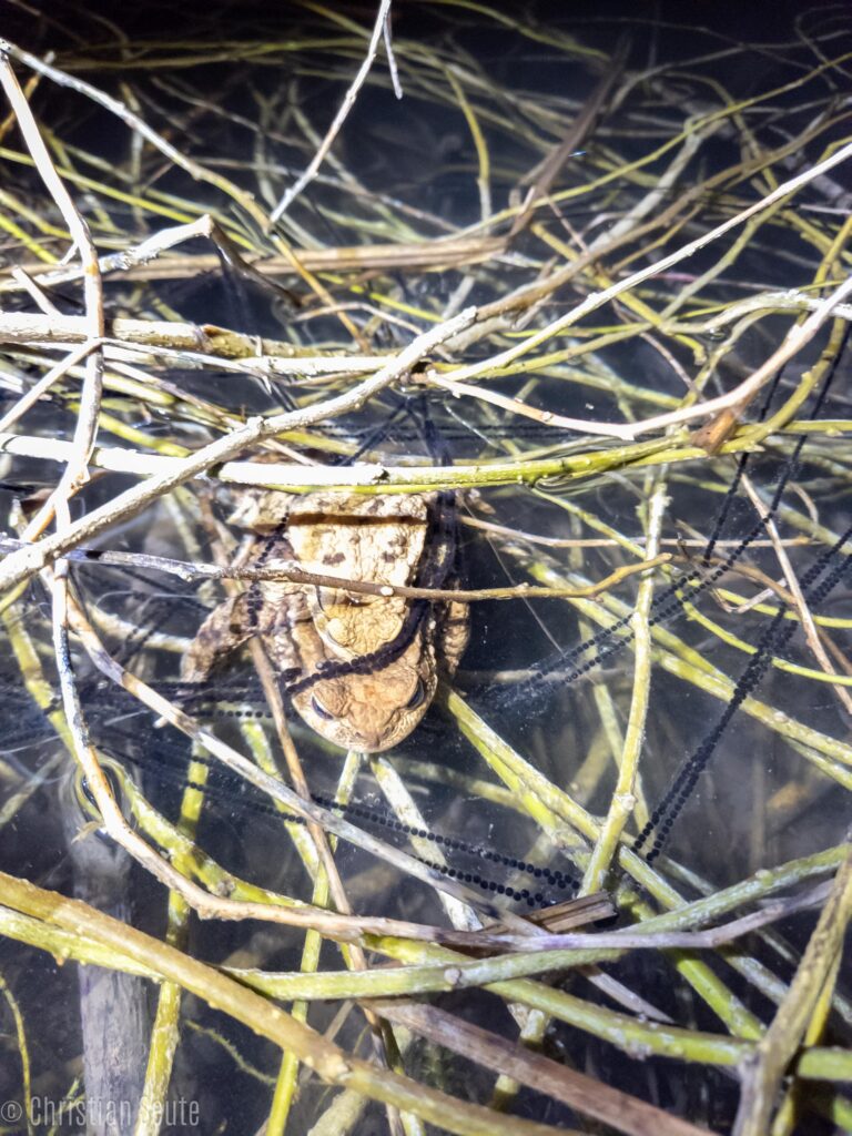 Das Fotografieren von Erdkröten während ihrer Wanderung stellt eine Herausforderung dar. Da die Tiere überwiegend dämmerungs- und nachtaktiv sind, sind die Lichtverhältnisse oft unzureichend. Obwohl man sich mit einer Stirnlampe oder Taschenlampe behelfen kann, erzeugt das künstliche Licht meist einen sehr harten, direkten Schein, der die natürliche Wirkung der Szene mindert und das Fotografieren erschwert. Zudem sollte bei jeder Beobachtung und Dokumentation Rücksicht auf die Tiere genommen werden, um sie nicht unnötig zu stressen oder zu gefährden.